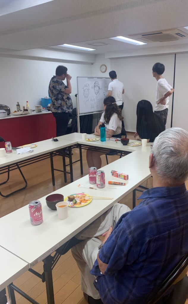 なんとその留学生は日本の昔のアニメも大好き!だったのです。私の兄とすぐに意気投合し、スラムダンクや北斗の拳の話題で盛り上がり、パーティールームにあった白板にアニメの絵を描き始めたり、兄が有名なセリフ「おまえはすでに死んでいる…」と言うと、留学生もその日本語は知っていたようで、二人で声を合わせて連呼して爆笑していました。